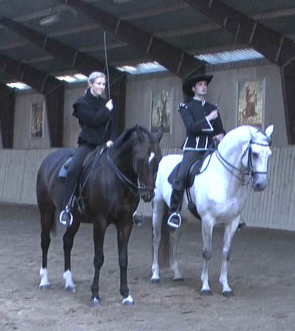 Voorafgaande aan de Summer Academy heb ik op de Public Evening samen met Marius Schneider een ”pas de deux” gereden. Marius reed op zijn lusitano hengst Orfeo en ik reed op Romanesque.